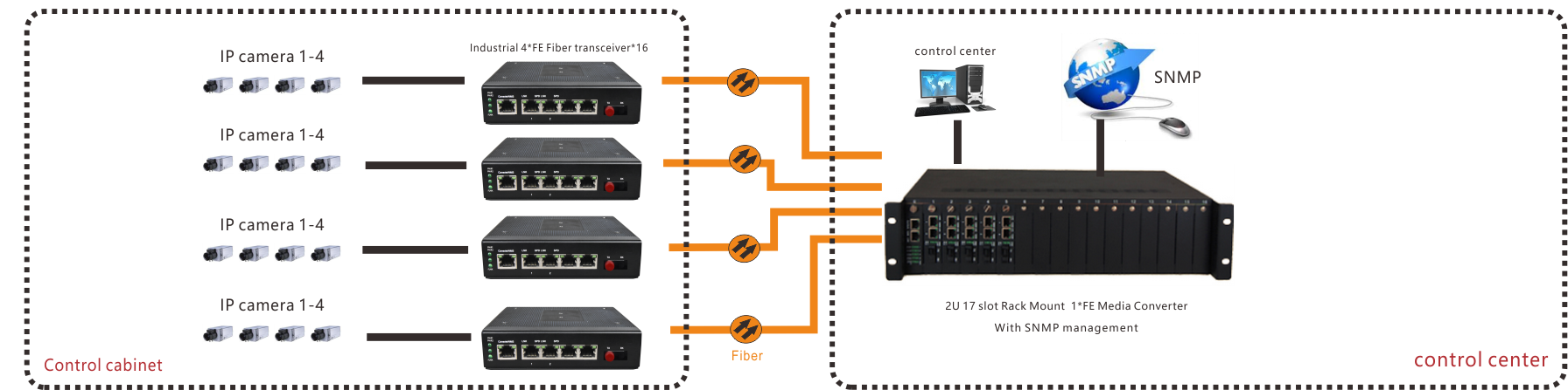 This series of products is the conversion between the industrial grade 4*10/100base-T twisted pair and 100base-FX fiber media or extended network transmission fiber conversion optical fiber network is mainly used for long-distance transmission (20/40/60/80/120 km).