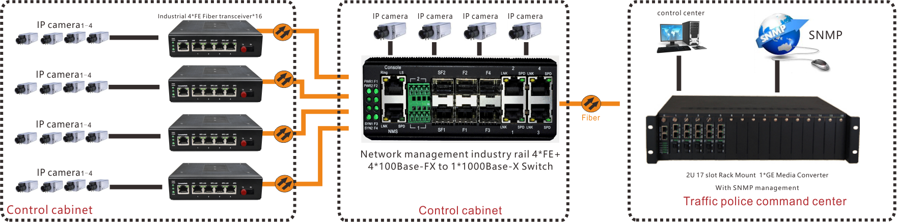 Equipment to provide 4*FE 4*100base-FX 1 Gigabit optical port an optional Console / SNMP network management port;