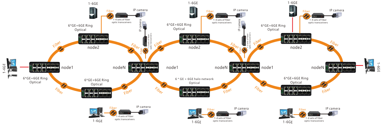 ◆ Support a variety of fiber optic network structure: point to point star chain ring network redundancy (support multi-ring combination) and can be combined for more complex network topology to support a variety of fiber network structure;