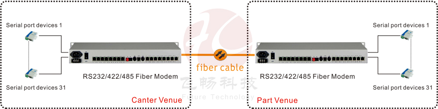 31RS232/485/422 Fiber Modem provides 31Channel RS232/485/422 transmission on fiber. The product breaks through contradictions between traditional serial interface communication distance and communication rate, besides, it also can solve electromagnetic interference, ground ring interference and lightning damage. The device greatly improves reliability, security and confidentiality of data communication. It is widely used for various industrial control, process control and traffic control occasions, especially for Bank, and Power and other sectors and systems which have special requirements of electromagnetic interference environment. RS232/RS485/RS422 channel can transmit adaptable serial data asynchronously 0Kbps-19.2Kbps baud rate.