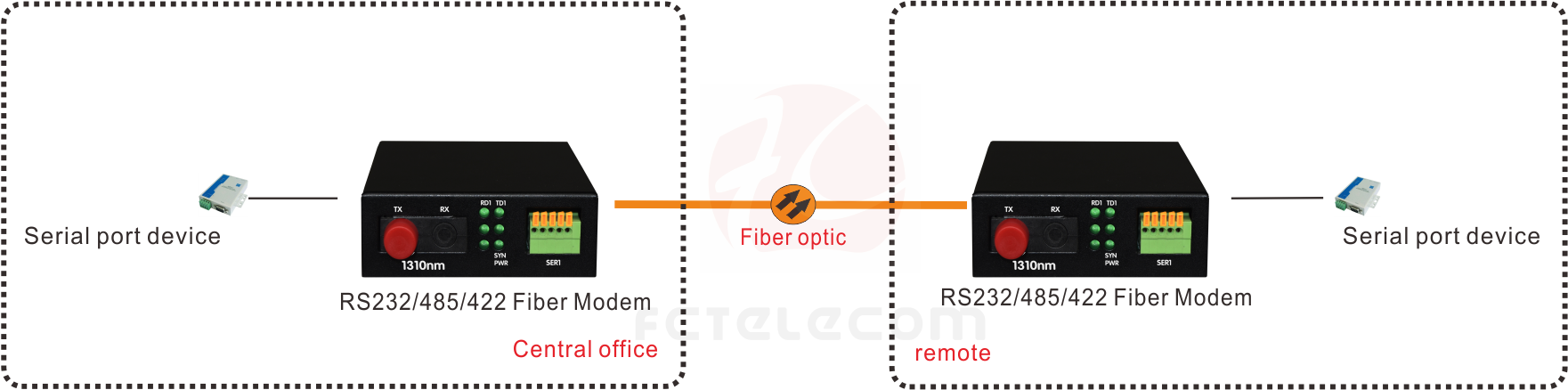 This device is based on FPGA which supports asynchronous RS-232 communication interface Fiber Modem. The device is the best choice of connecting to the remote terminal unit (RTU) to a host (HOST) or a distributed data acquisition system (SCADA) controllers with very high performance price ratio. Using ordinary multi-mode fiber effective communication distance is up to 4KM while using ordinary single-mode fiber effective communication distance up to more than 40KM. Serial port communication rate is up to 921.6KBPS. As a result of the fiber as a transmission medium you can completely avoid the threat to communication device under the adverse environment such as lightning surges and electromagnetic interference at the same time it saves investments of the original lightning surge protection devices that using copper .