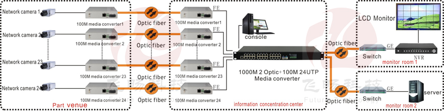 FC-SW24 is Ethernet IEEE802.3 media transceiver to achieve media conversion or extending network transmission distance between two kinds of media which are 24*10/100base-T UTP and 2*1000base-S/LX. It mainly used for fiber network far distance (20/40/60/80/100km) transmission supports 10/100/1000M or 10M100M1000M transmission rate. Fiber port and UTP can work through 100M or 1000M rate.