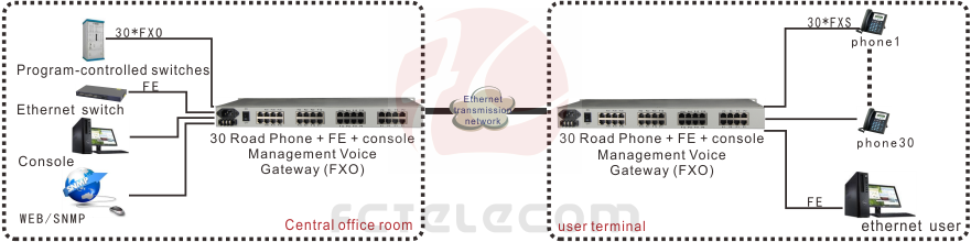 Voice port support FXO / FXS / two /four-wire EM / two-wire audio / magnet telephone interface FXO port and program-controlled switches docking FXS port and the user's telephone connected;