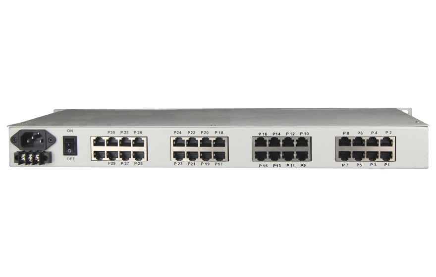 The converter encapsulates voice data in IP data packets and supports UDP encapsulation to realize the conversion of 1-30 voice services to two 100M Ethernet networks. It can communicate on the same network segment or different network segments via routers.