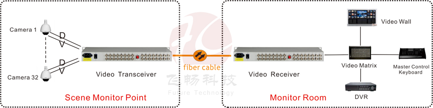 This digital video optical transceiver adopts digital video encoding and gigabit optical fiber transmission technology. The multi-channel single-direction bi-direction audio, video, data, telephone, Ethernet and switch real-time synchronization, no-distortion and high quality transmission is on the single-core or dual-core optical fiber. Complete digital video non-compression transmission technology, with video and data condition indicator, can monitor the system normal operation. It uses modular design, the user can flexibly select or customize configuration based on the scene occasion. Rack installation or desktop installation can be optional. This product is made up of optical transmitter and receiver. It can transmit 32Channel forward direction Video and 1Channel reverse direction RS485 data.