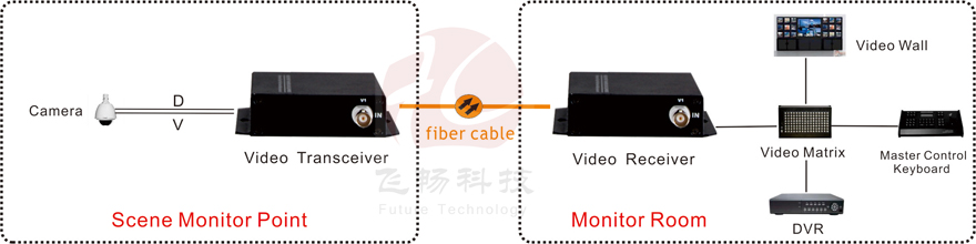 This digital video optical transceiver adopts digital video encoding and gigabit optical fiber transmission technology. The multi-channel single-direction bi-direction audio, video, data, telephone, Ethernet and switch real-time synchronization, no-distortion and high quality transmission is on the single-core or dual-core optical fiber. Complete digital video non-compression transmission technology, with video and data condition indicator, can monitor the system normal operation. It uses modular design, the user can flexibly select or customize configuration based on the scene occasion. Rack installation or desktop installation can be optional. This product is made up of optical transmitter and receiver. It can transmit 1 Channel forward direction Video and 1Channel reverse direction RS485 data.