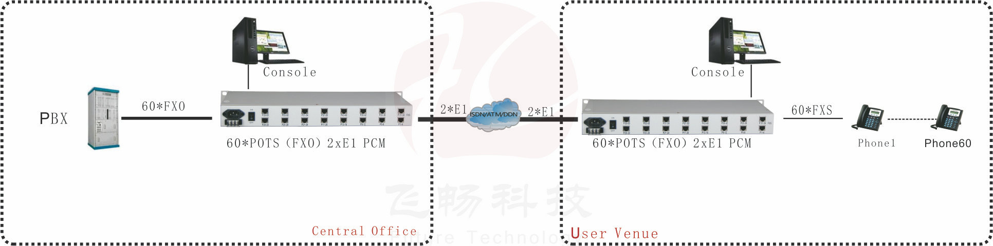This device is 1U High which provides telephone outputs 60 Equipment electrical part for the whole digital circuits machine reliability stability low power consumption high integration small size easy installation and maintenance. Many customers are telecommunications operators 2*E1 leased lines used in computer networking this equipment can be rented at the E1 line opened a few line phone you can make free calls between headquarters and branch offices of this.
