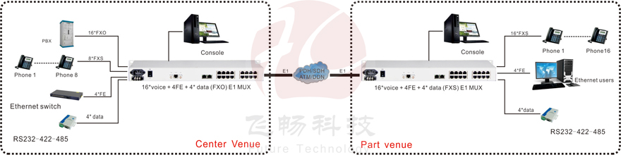 E1-16Voice + 4FE + 4RS232 Multiplexer