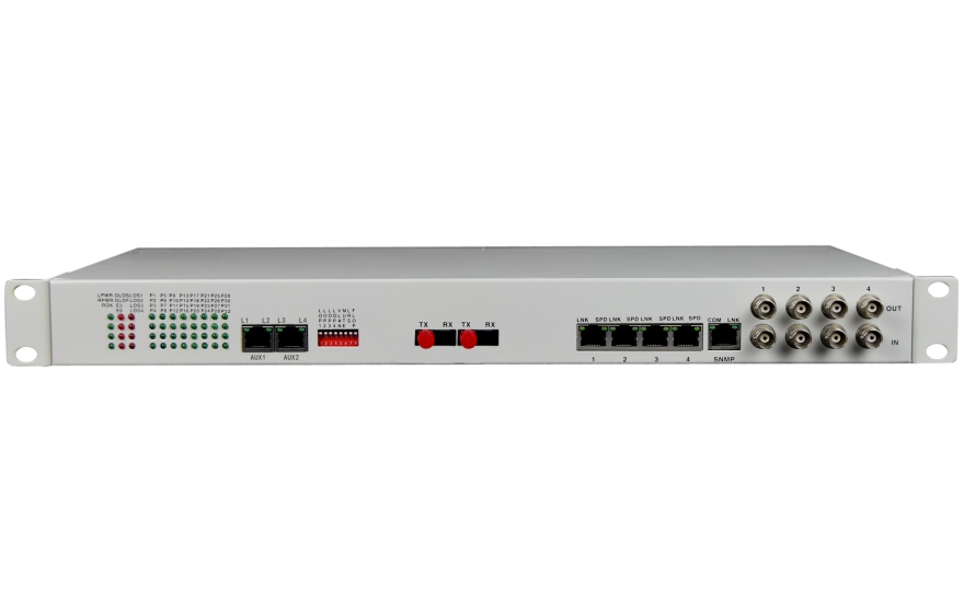 The Equipment provides 32*Voice, 1~4E1 interface, 4*10/100/1000M Gigabit Ethernet interface (Wire speed 1000M), and four extended service interfaces. 4*GE interface for the Switch port, can support VLAN division. 4 expansion service interface can be used as RS232/RS485/RS422 asynchronous data /TTL signal/Dry Contact signal and other transmission channels, the application is very flexible.