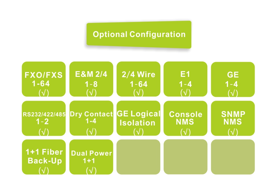 ◆ Voice port to support FXO/FXS/2-4 Wire E&M/2-4 wire Audio/Magnet phone interfaceFXO port plug into PBXFXS port is connected to the user's telephone;