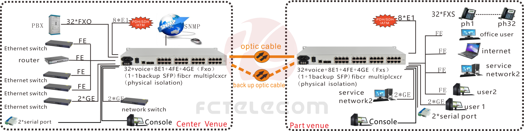 32*voice+8E1+4FE+4GE ( Physical Isolation) Fiber MUX