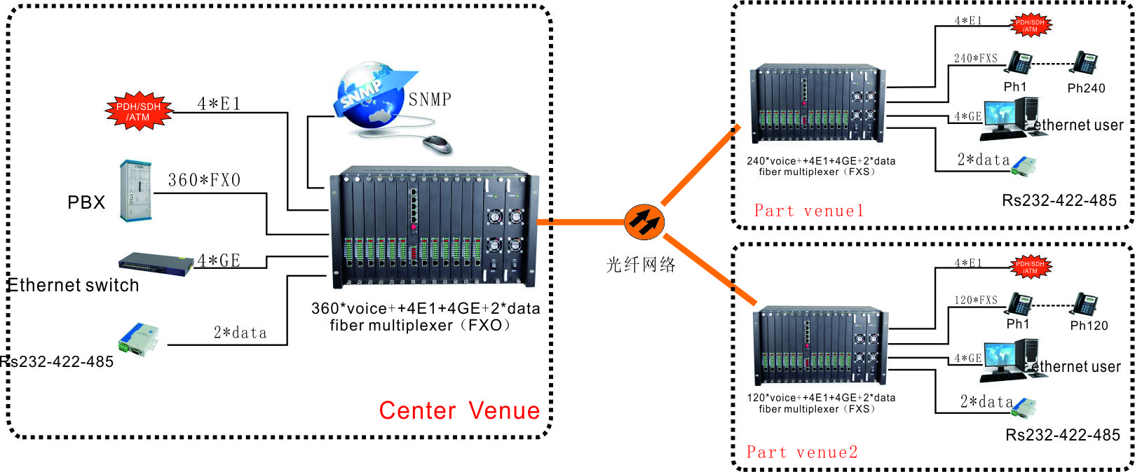 Voice Over Fiber/E1 Voice Over E1 Series Voice Over Fiber Series Multi-service Voice RACK Mount Voice Modular multi-service optic multiplexer More>>