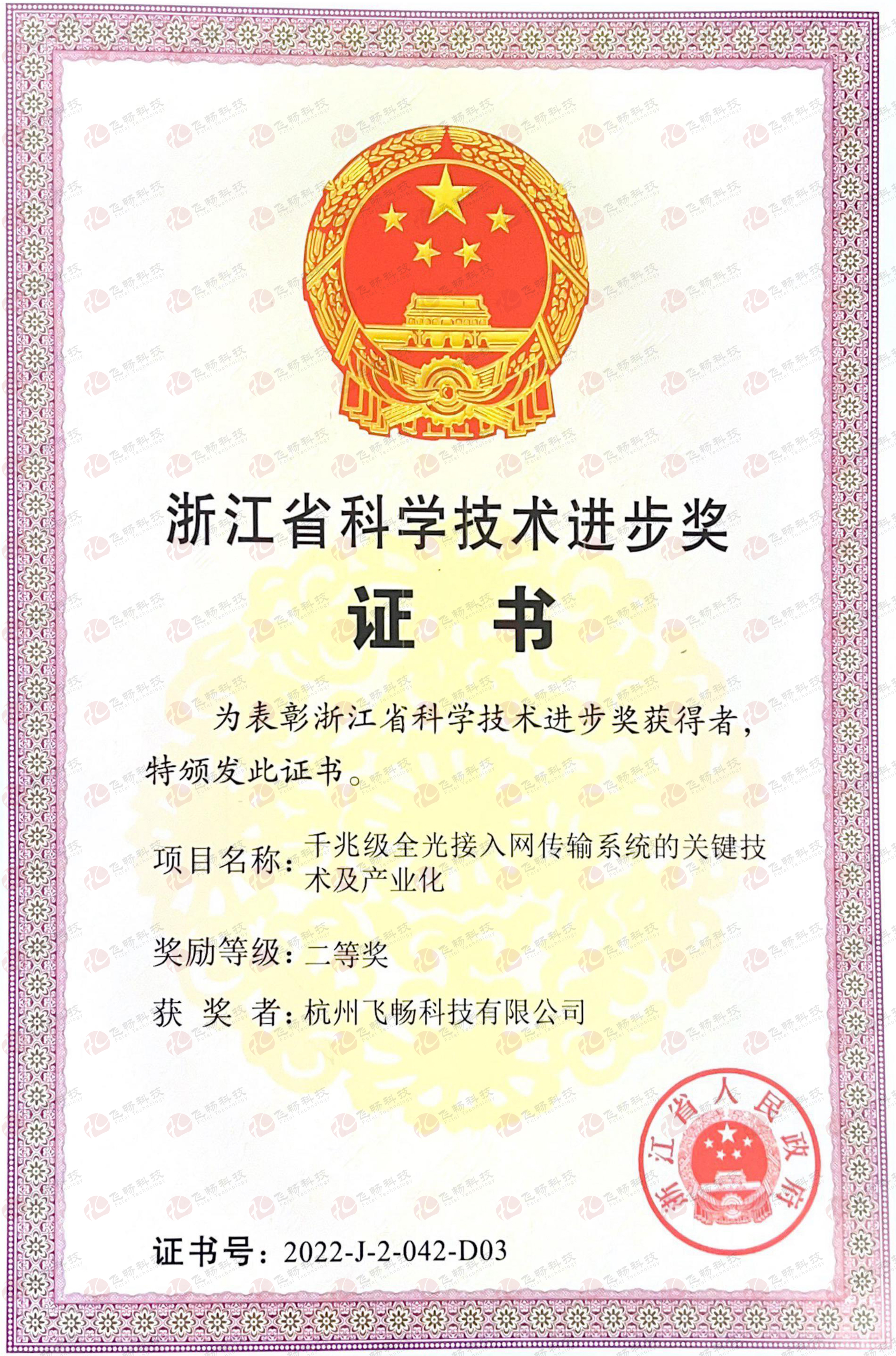 飛暢科技 榮膺2022年度浙江省科學技術(shù)進步獎