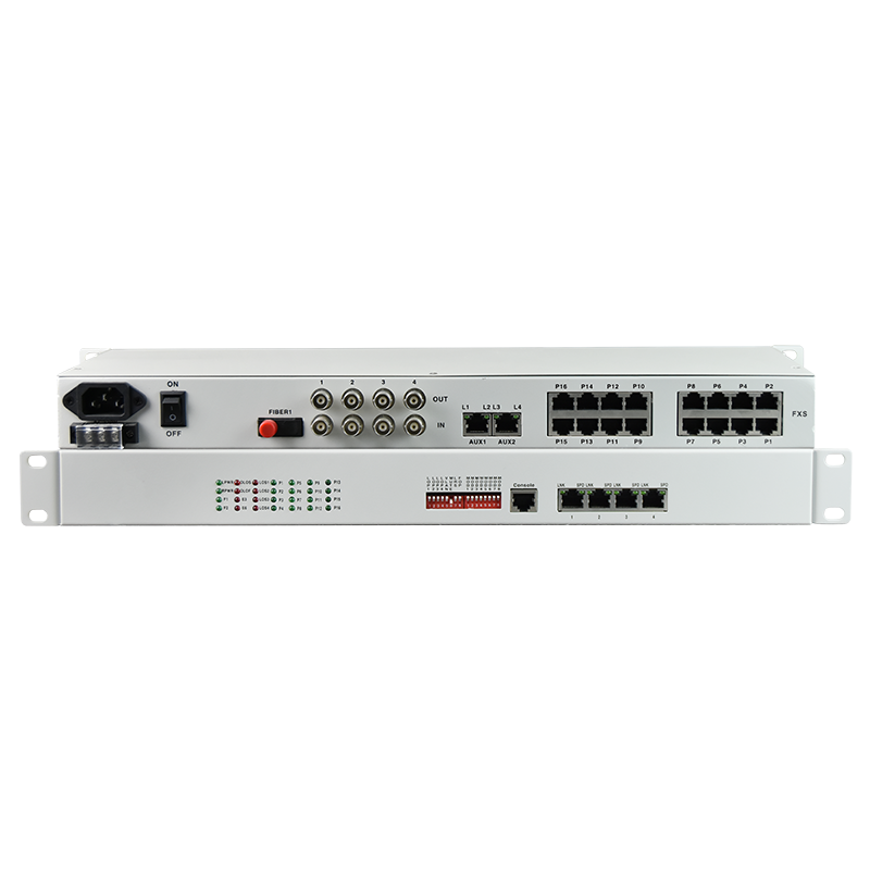 在中繼端,設(shè)備與程控交換機(jī)相連;在用戶端,設(shè)備與普通電話機(jī)相連。中繼端設(shè)備與用戶端設(shè)備之間通過光纜相連。