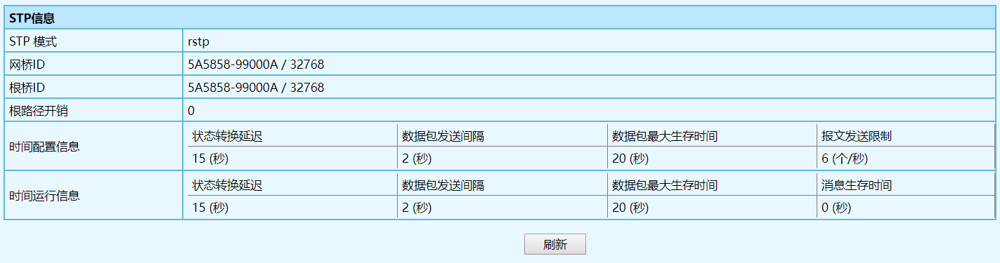 2.在[STP 信息]界面中可以查看 STP 的當前運行信息,如下圖所示。