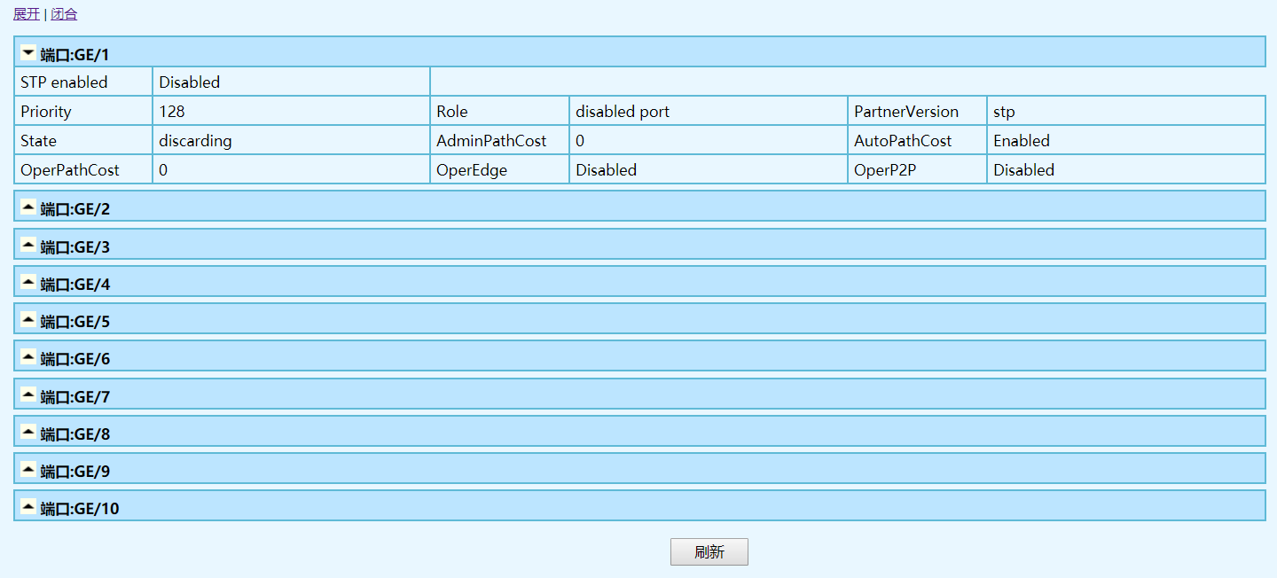 2.在[端口設(shè)置]界面中可以查看 STP 的端口配置信息。