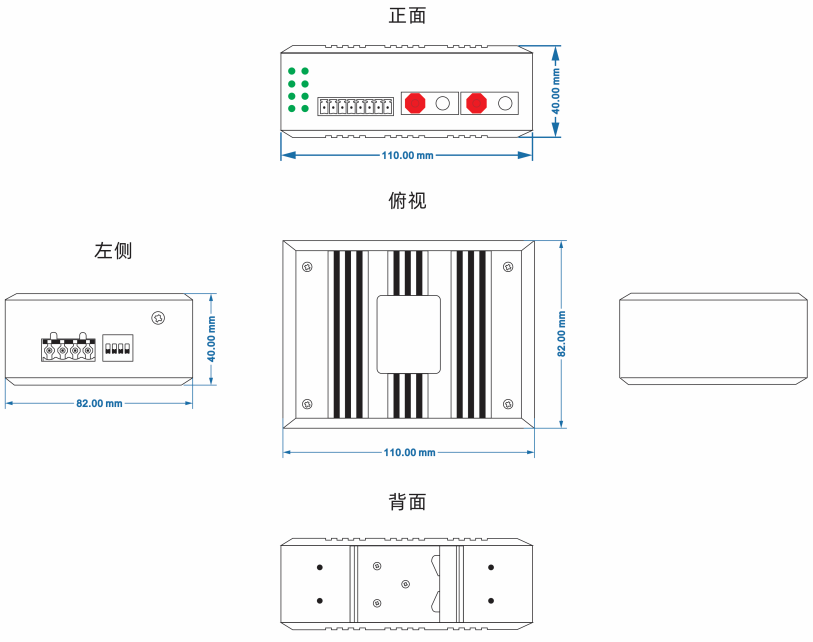 外殼:            IP40防護(hù)等級,鋁合金材質(zhì)