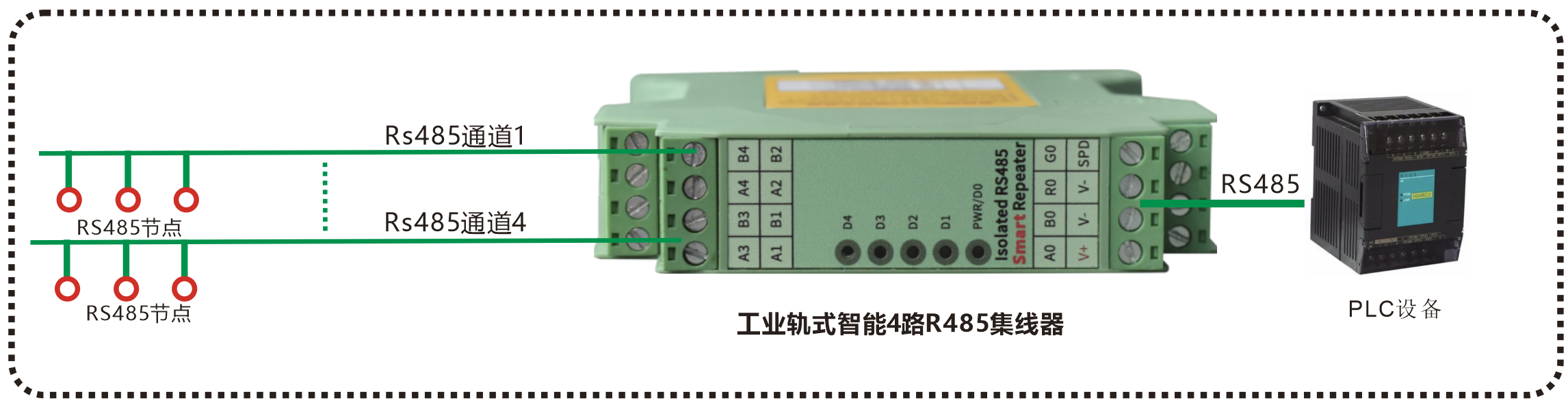 產(chǎn)品功能描述 智能工業(yè)軌式 4路RS485集線器