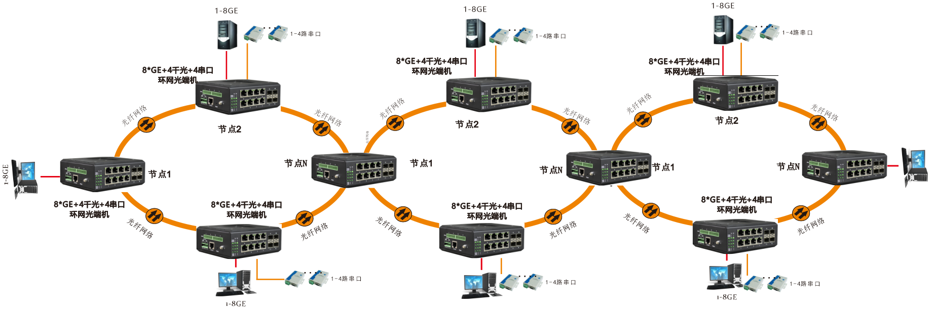 每個(gè)電口或光口都支持標(biāo)準(zhǔn)的 ERPS 環(huán)網(wǎng)協(xié)議,自愈時(shí)間小于 20ms ;