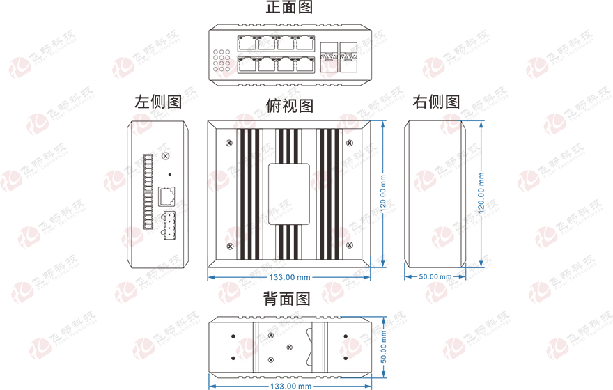鋁合金外殼,工業(yè)導(dǎo)軌式設(shè)計(jì),良好散熱特性,金氧極氧化工藝,IP40防護(hù)等級(jí),專(zhuān)為嚴(yán)酷苛刻的工業(yè)環(huán)境而設(shè)計(jì);